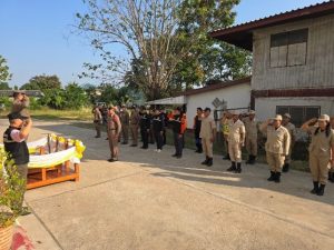 วันที่ 24 ธันวาคม 2567 เวลา 9.00น. นำโดย พ.ต.อ.เทวินทร์ นาจารย์ ผกก.สภ.ปางมะค่า พ.ต.ท. สานิตย์ วัฒนากองสุภารอง ผกก.ป.สภ.ปางมะค่า พ.ต.ท. เดชา ตันติวัฒน์ รอง ผกก.สส.สภ.ปางมะค่า พร้อมข้าราชการตำรวจ สภ.ปางมะค่าอปพภร. และ อส.ตร. ร่วมพิธีการปล่อยแถวระดมกวาดล้างอาชญากรรมในช่วงเทศกาลปีใหม่ประจำปี 2567 บริเวณหน้า สภ.ปางมะค่า เพื่อให้ชุดปฏิบัติการต่างๆ ออกปฏิบัติหน้าที่ตามที่ได้รับมอบหมาย ในช่วงเทศกาลปีใหม่ ประจำปี 2567