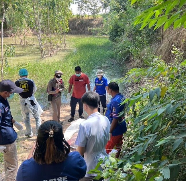 งานสอบสวน – ร.ต.อ.ภูพลัชญ์ ขันติวงศ์มงคล พนักงานสอบสวน ตรวจสอบที่เกิดเหตุคนจมน้ำเสียชีวิต