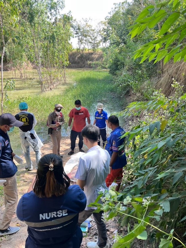 งานสอบสวน – ร.ต.อ.ภูพลัชญ์ ขันติวงศ์มงคล พนักงานสอบสวน ตรวจสอบที่เกิดเหตุคนจมน้ำเสียชีวิต